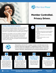 “Once I own my identity with MemberPass®, I can have 100% trust that my credit union knows who I am, and I know who they are. It gets rid of log-ins and security questions that cause a lot of friction and frustration and hinders the experience we rely on. On both the member and credit union basis, it will transform the way we do business to be more efficient, faster, and more trustworthy.”